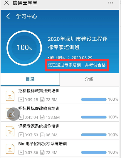 时间:2020-06-11 15:39:48 浏览数:1652深圳市建设工程交易中心评标专家首次线上培训活动于2020年5月29日圆满结束,整个培训为期12天,参加培训的专家超过4000位,培训完成率98.5%,获得深圳市建设工程交易中心和深圳市建设监理工程师协会领导的一致好评,本次活动的线上培训平台,由广东世纪信通网络科技有限公司旗下产品“信通云学堂”提供。